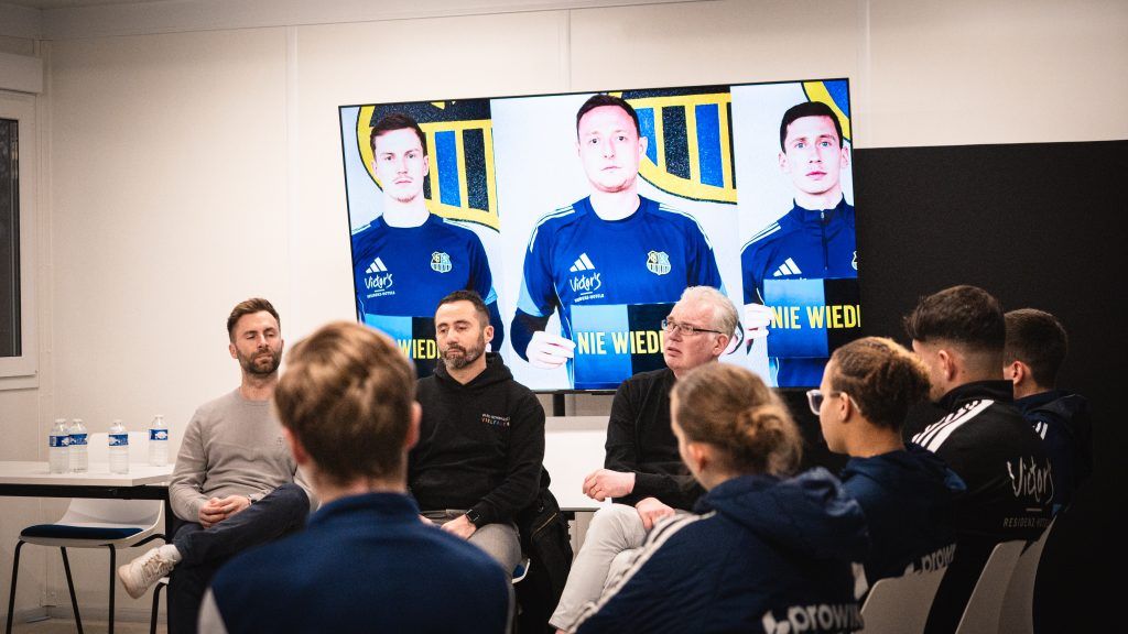 Oliver Strauch, Oliver Dillinger und Karsten Sprecht gaben fachliche Impulse und traten mit den Spielerinnen und Spielern in einen offenen Austausch. Ziel war es, historisches Bewusstsein zu fördern und zu verdeutlichen, warum Demokratie, Respekt und Vielfalt aktiv verteidigt werden müssen.